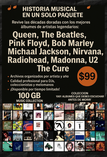 🔥 Más de 2 TB de contenido listo para escuchar, mezclar o disfrutar sin conexión.